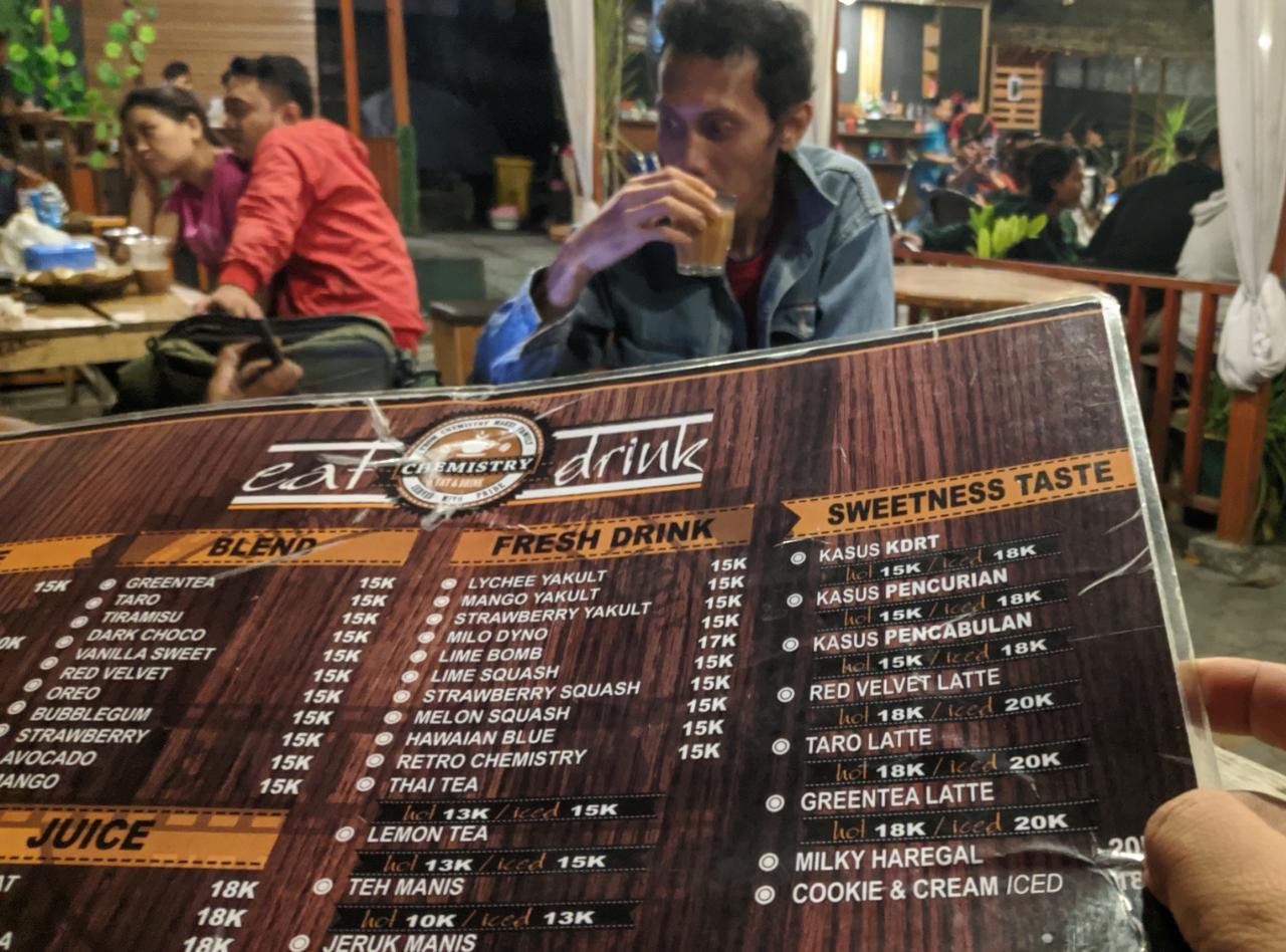Namun jangan khawatir, kasus-kasus itu bukan perbuatan kriminal. Tetapi menu yang disediakan warkop Chemistry.