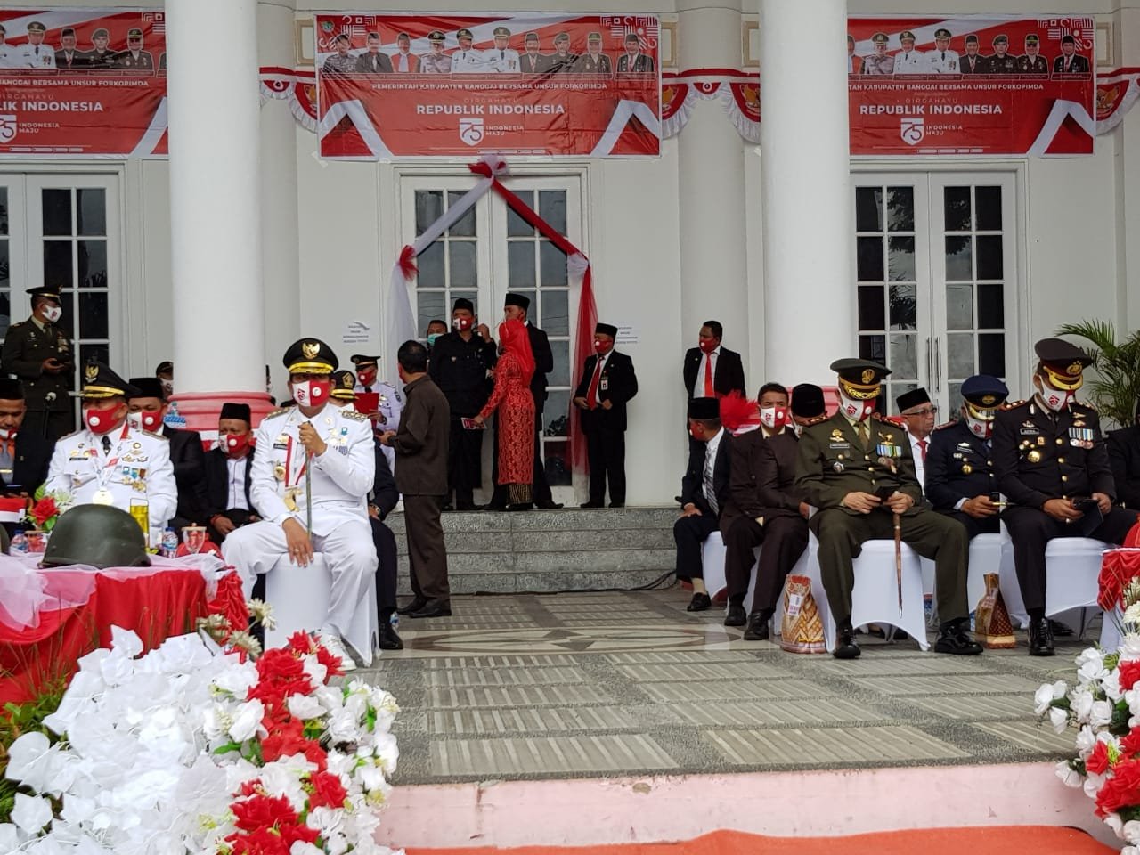 Sesuai upacara, Fanny menyatakan, upacara peringatan Proklamasi Kemerdekaan RI ke 75, dilaksanakan secara sederhana dan khifmat. Dan dihadiri unsur Forkopimda, pimpinam OPD, organisasi kemasyarakatan serta pimpinan BUMN/BUMD.