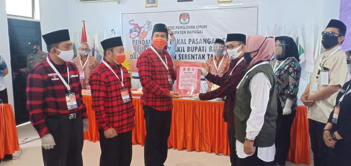 SultimNews, LUWUK-Herwin Yatim dan Mustar Labolo (Winstar) menjadi kandidat pertama yang mendaftar sebagai calon bupati dan wakil bupati di KPU Banggai.