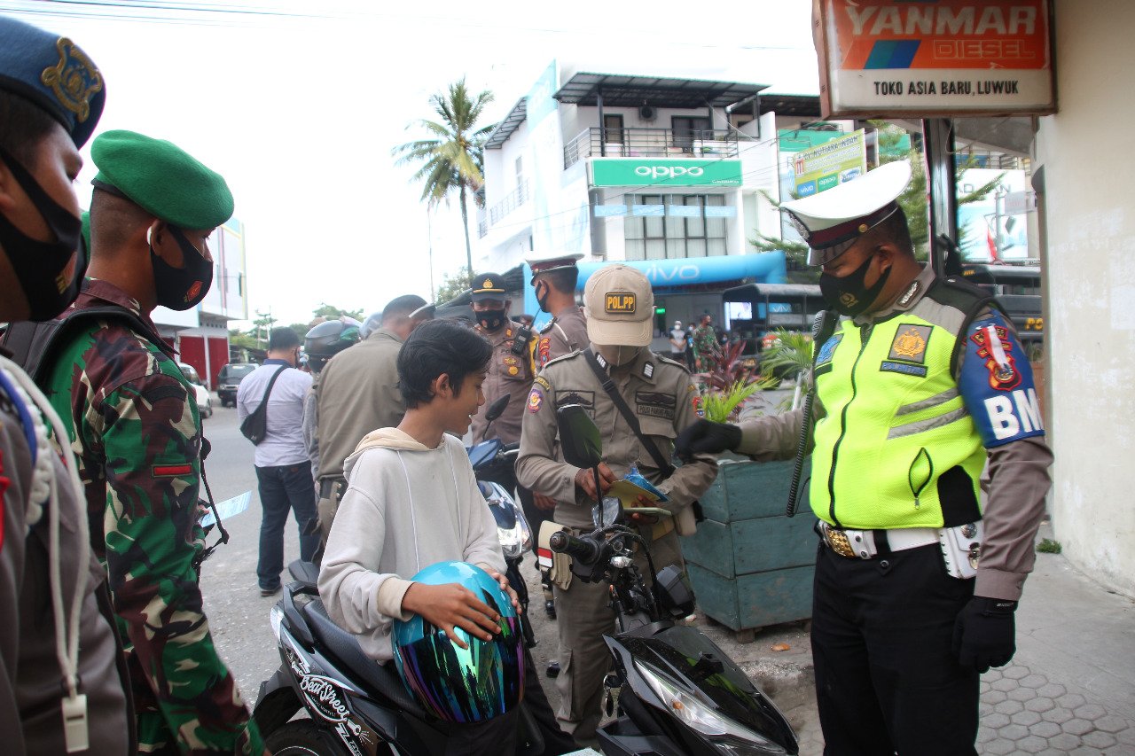 Terbaru, petugas gabungan ini menindak puluhan penumpang atau pengendara yang tidak menggunakan masker di kompleks pertokoan, kota Luwuk, Kamis sore (15/10).