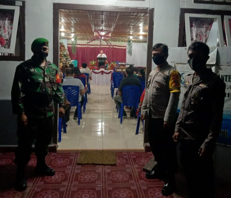 SultimNews.info, BANGKEP- Personel Koramil 1308-10/Salakan melalui Pos Koramil Totikum bersama Polsek Totikum Polres Banggai Kepulauan, mengamankan jalannya ibadah malam menyambut perayaan Natal 25 Desember 2020.