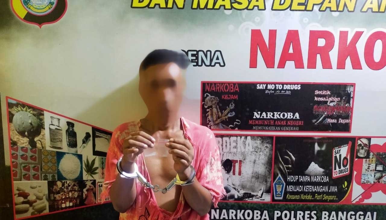 LUWUK, SultimNews- IU alias I (41) warga kompleks Nyiur, Kelurahan Luwuk, Kecamatan Luwuk, Kabupaten Banggai, diringkus aparat kepolisan karena terlibat tindak pidana penyalahgunaan dan peredaran narkoba, Jumat malam (14/5/2021).