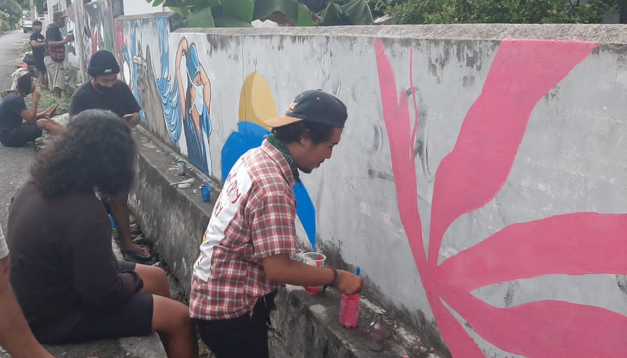 LUWUK, SultimNews- Komunitas pegiat seni lukis dan gambar, Sketchood, menyuarakan kritik terhadap permasalahan sosial dengan mengambari tembok yang terletak di samping jalan menuju tugu Adipura dari kompleks Alun-Alun Bumi Mutiara sejak hari minggu (16/5/2021).