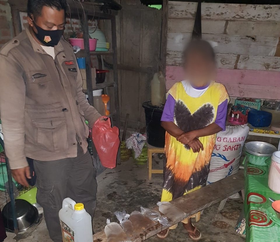 Dari hasil pengerebekan di dua tempat, AKP I Nyoman Dunia menemukan satu rumah milik Ibu Rumah Tangga (IRT) berinisial SH (35) menyimpan miras cap tikus.