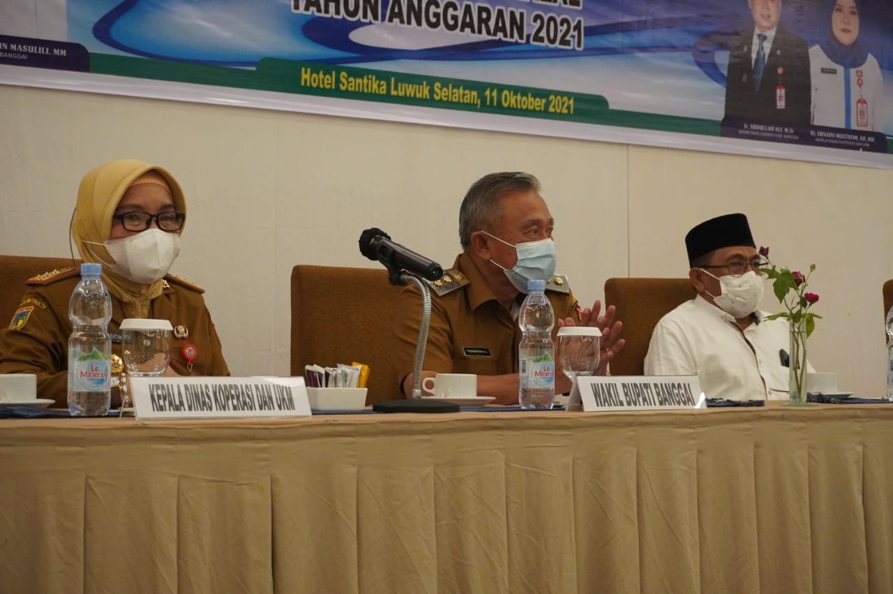 Wakil Bupati Banggai, Furqanuddin Masulili, saat menghadiri kegiatan sosialisasi fasilitas P-IRT, dan Label Halal yang dilaksanakan oleh Dinas Koperasi dan UKM di Hotel Santika Luwuk, Senin (11/10). [Foto: Taufik Basri/Luwuk Post]