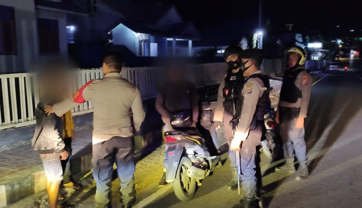 DIAMANKAN: Tim Tarantula Satuan Sabhara Polres Banggai, saat mengamankan seorang tukang ojek di Kompleks Vihara, Kelurahan Karaton, Kecamatan Luwuk, Sabtu (30/10) malam. [Foto: Istimewa]