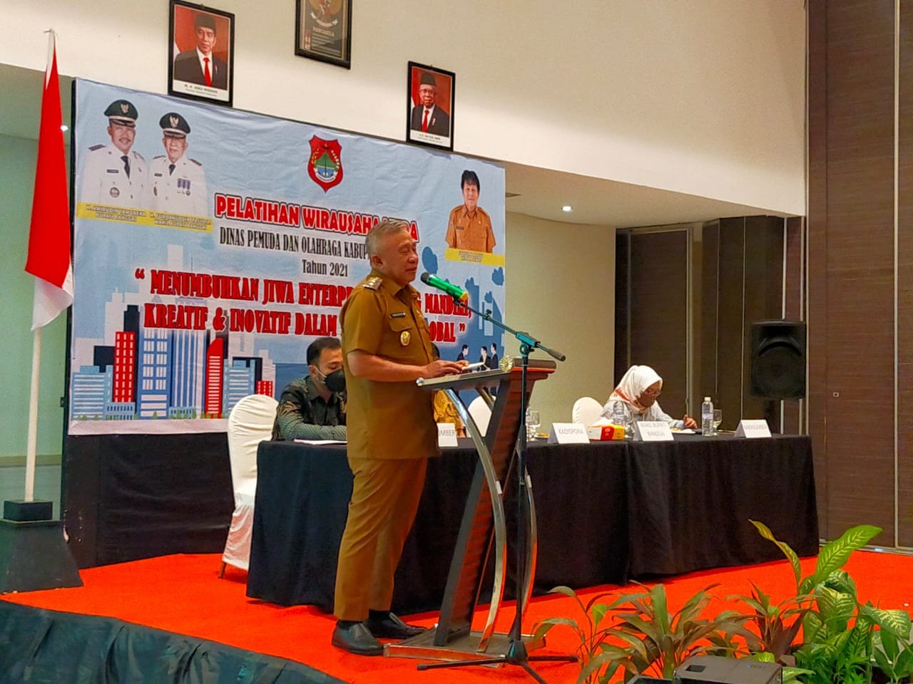 DUKUNG PELAKU USAHA: Wabup Banggai, Furqanuddin Masulili, dalam kegiatan pelatihan wirausaha muda, yang dilaksanakan di Hotel Estrella Luwuk, Selasa (14/12). [Foto: Istimewa]