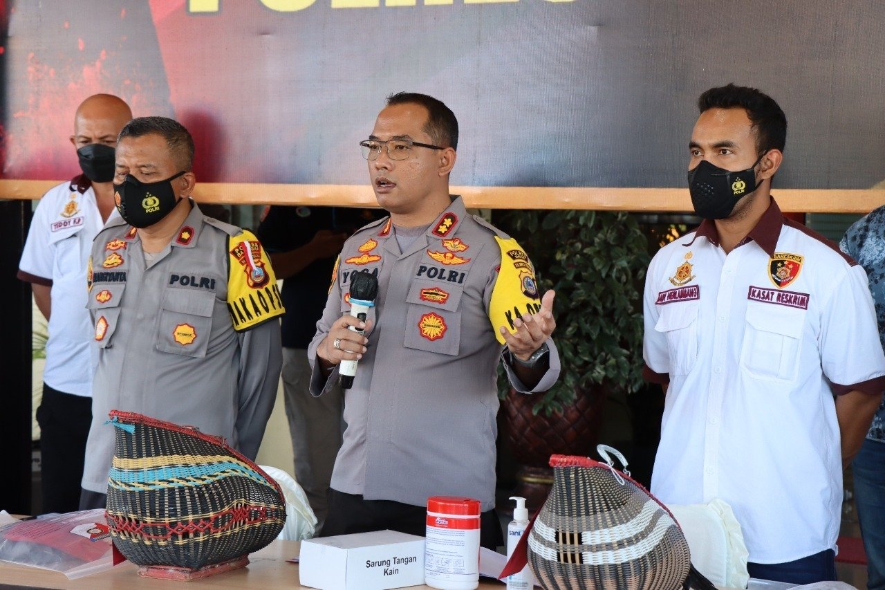 BERI KETERANGAN: Kapolres Banggai AKBP Yoga Priyahutama, dalam kegiatn Konfrensi Pers, di Mapolres Banggai, Rabu (29/12). [Foto: Istimewa]