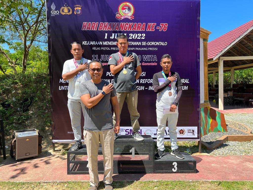 Khusus untuk kelas Pistol Presisi jarak 25 meter, juara 1 (Medali Emas)diraih Roy Tilameo Pemred Luwuk Post, Juara 2 (Medali Perak) Awaludin Wartawan Koran Rakyat Gorontalo (Gorontalo Post Group), dan juara 3 (Medali Perunggu) diraih Upik wartawan Mimoza Tv. Ketiganya mendapat uang bonus pembinaan dari Kapolda Gorontalo Irjen Pol Akhmad Wiyagus.