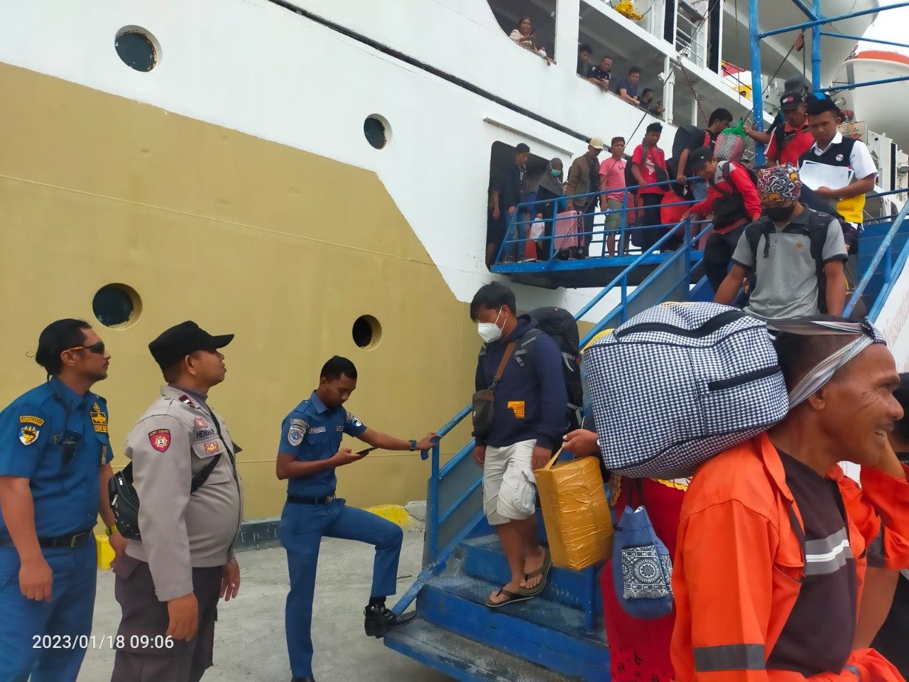 Sultimnews.info, Luwuk – Aparat dari Polsek Luwuk memantau dan mengamankan debarkasi dan embarkasi penumpang KM Tilongkabila di Pelabuhan Pelni Luwuk, Kelurahan Karaton, Kecamatan Luwuk, Kabupaten Banggai, Rabu (18/1) siang.