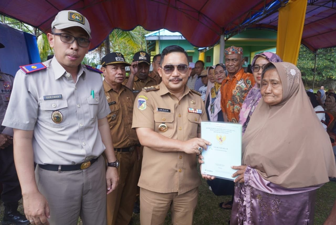 Bupati Amirudin juga mengingatkan agar masyarakat Desa Uwedikan yang menerima sertifikat agar menyimpannya dengan aman.