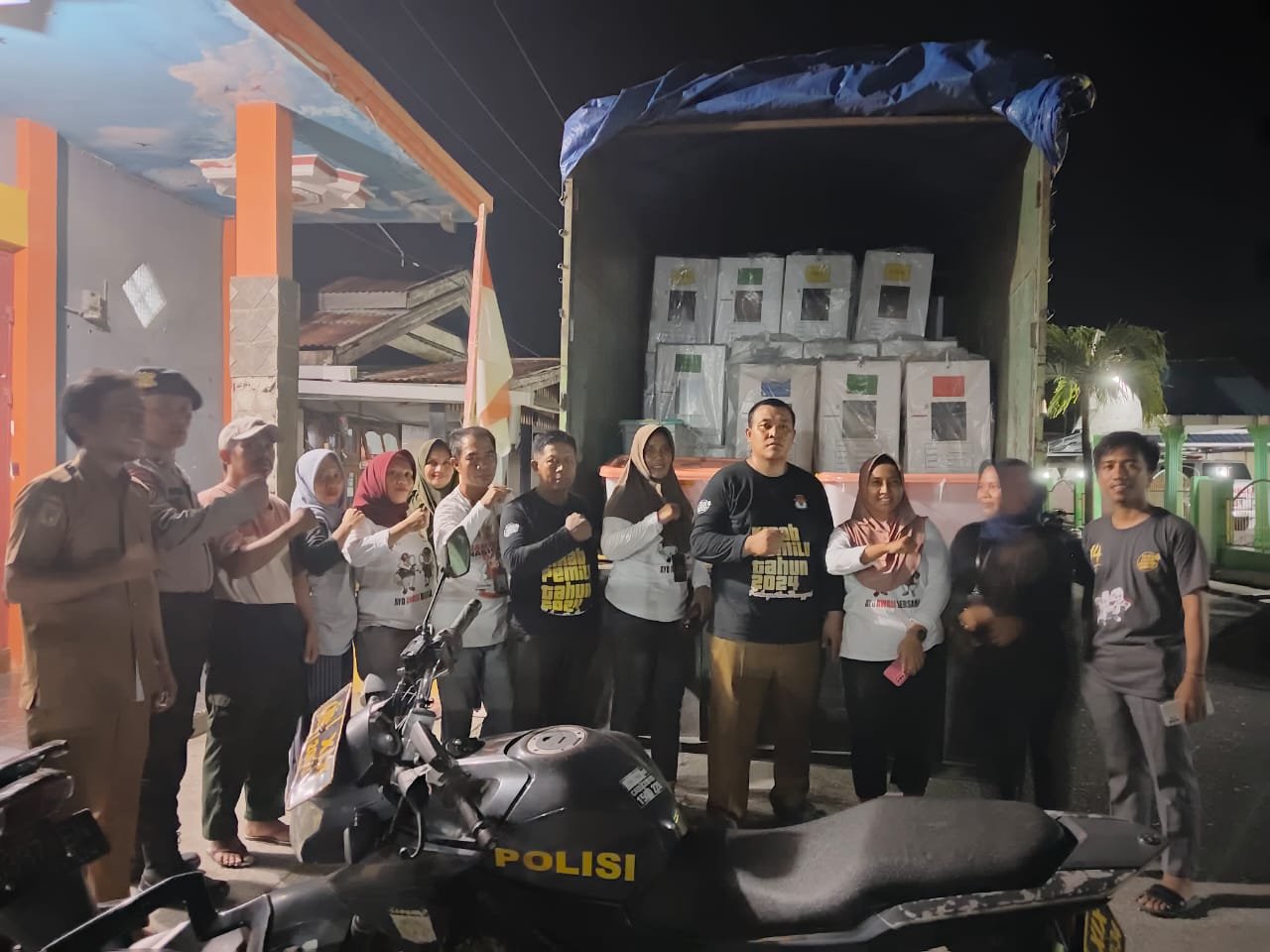 Membawa kotak suara presiden, DPR RI, DPD, DPRD Provinsi, dan DPRD Kabupaten, masing-masing 19 kotak serta 5 boks C1 hasil dan 1 boks hasil C1 pelno PPK.