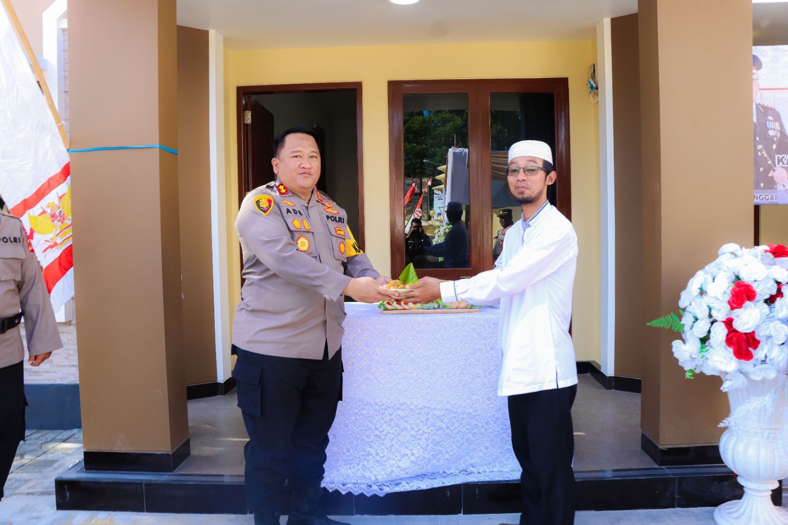 Diakhir peresmian dilakukan baca doa, gunting pita, serta pemotongan tumpeng. Kapolres juga menyerahkan bantuan 2 unit AC dan 2 buah Sprin bad. (*/dat)