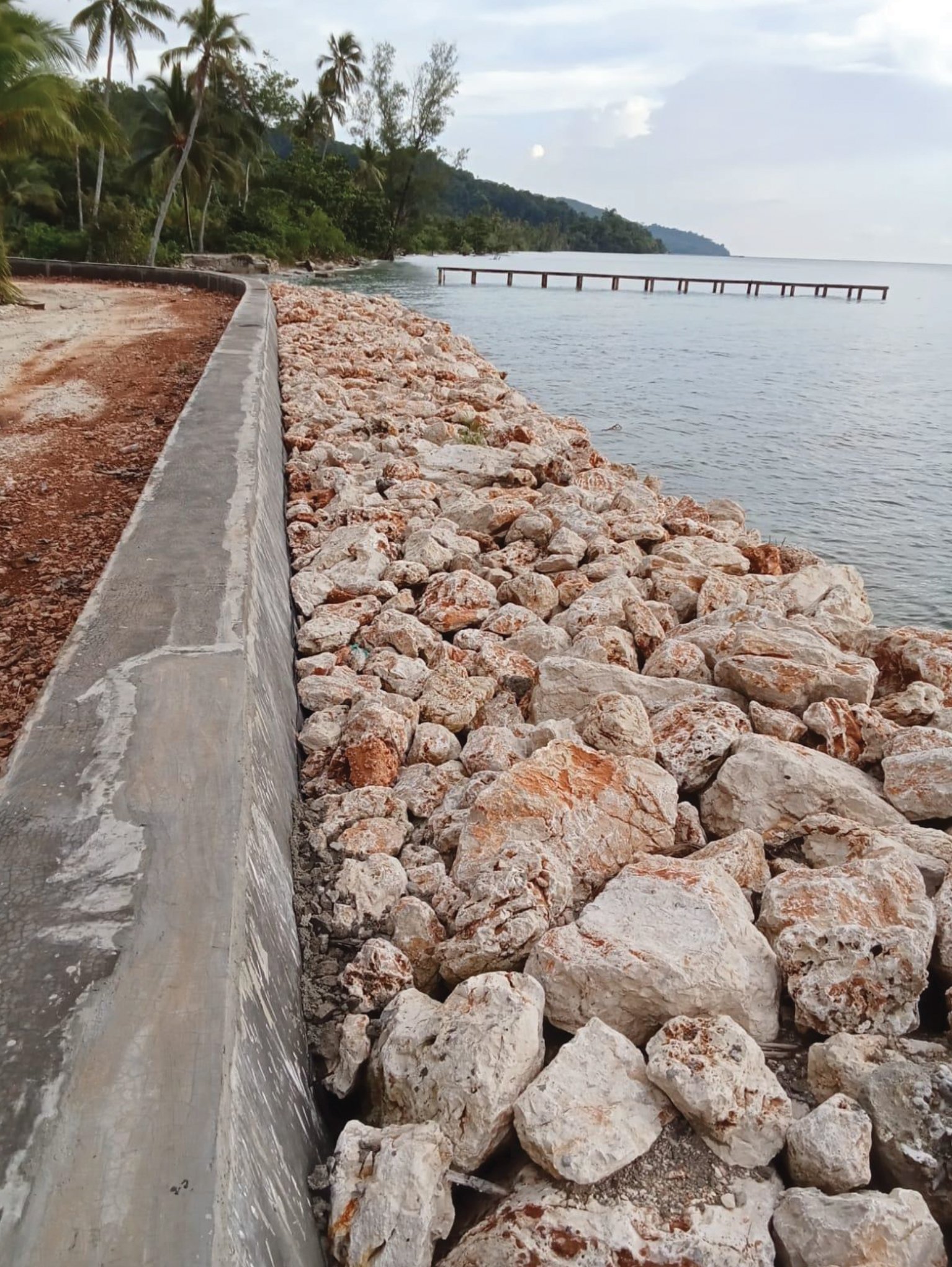 Pada pekerjaan Pasangan Batu Armor/Boulder yang terpasang pun sudah sesuai spesifikasi maupun DED yang tertuang dalam dokumen kontrak. Dimana batu yang digunakan batu utama (100-200 kg), batu sekunder (10-30 kg) dan juga batu pengisi (5-10 kg). (*)