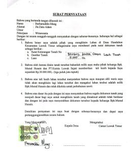 Dijelaskan juga, dalam pernyataan itu PT.KLS memberikan dana berupa tali asih kepada bersangkutan. Meskipun tanah dimaksud bukan milik Om Burhanudin.