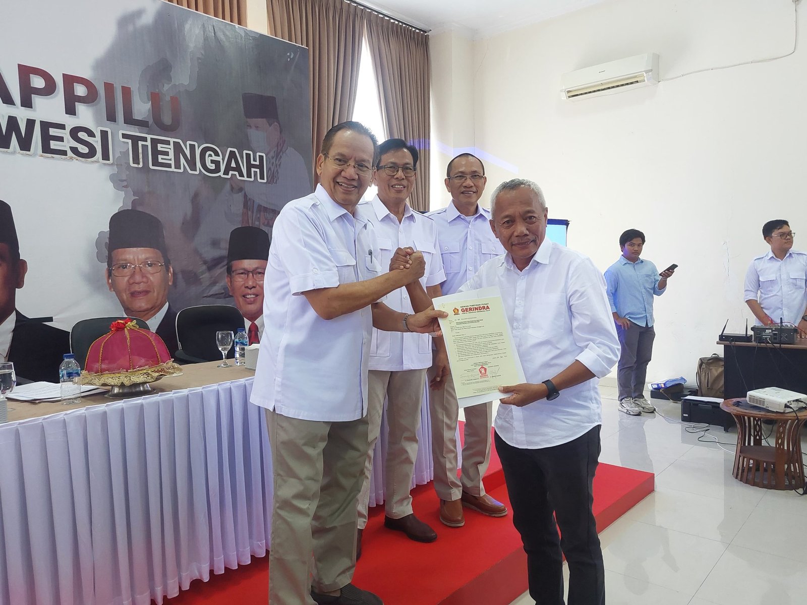 Penyerahan B1-KWK diserahkan langsung oleh Ketua DPD partai Gerindra Sulawesi Tengah Longki Djanggola.