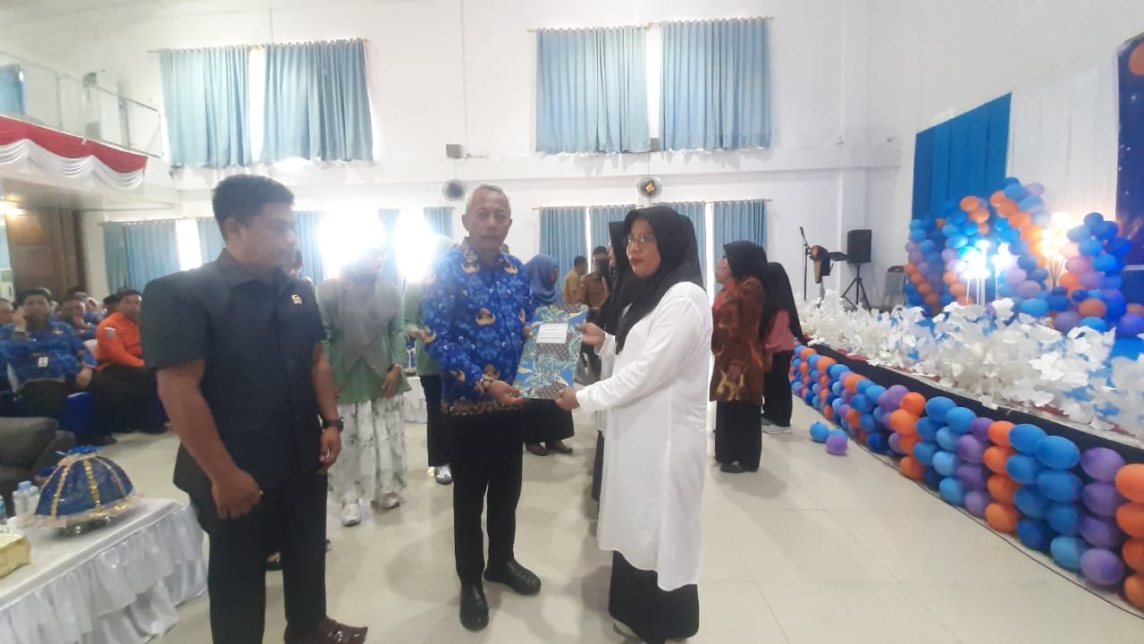 Usai membuka kegiatan, Bupati Sofyan menyalurkan bentuan leptop dan bahan makanan bergizi. (Man)