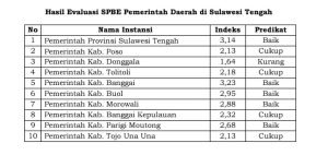 Nilai Indeks Evaluasi SPBE Banggai Tertinggi di Sulteng Berita|Senin, 15 Januari 2024oleh Berita LUWUK, SULTIMNEWS – Pemerintah Daerah Kabupaten Banggai kembali mencatatkan